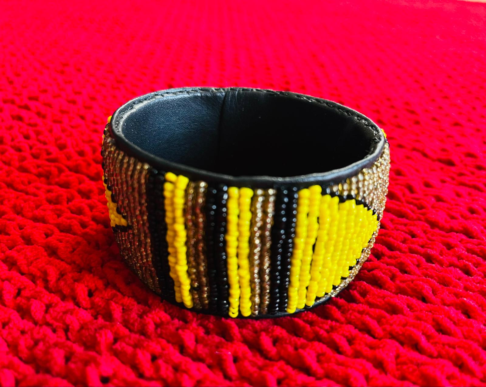 Multicolor Beaded Leather Cuff Bracelet