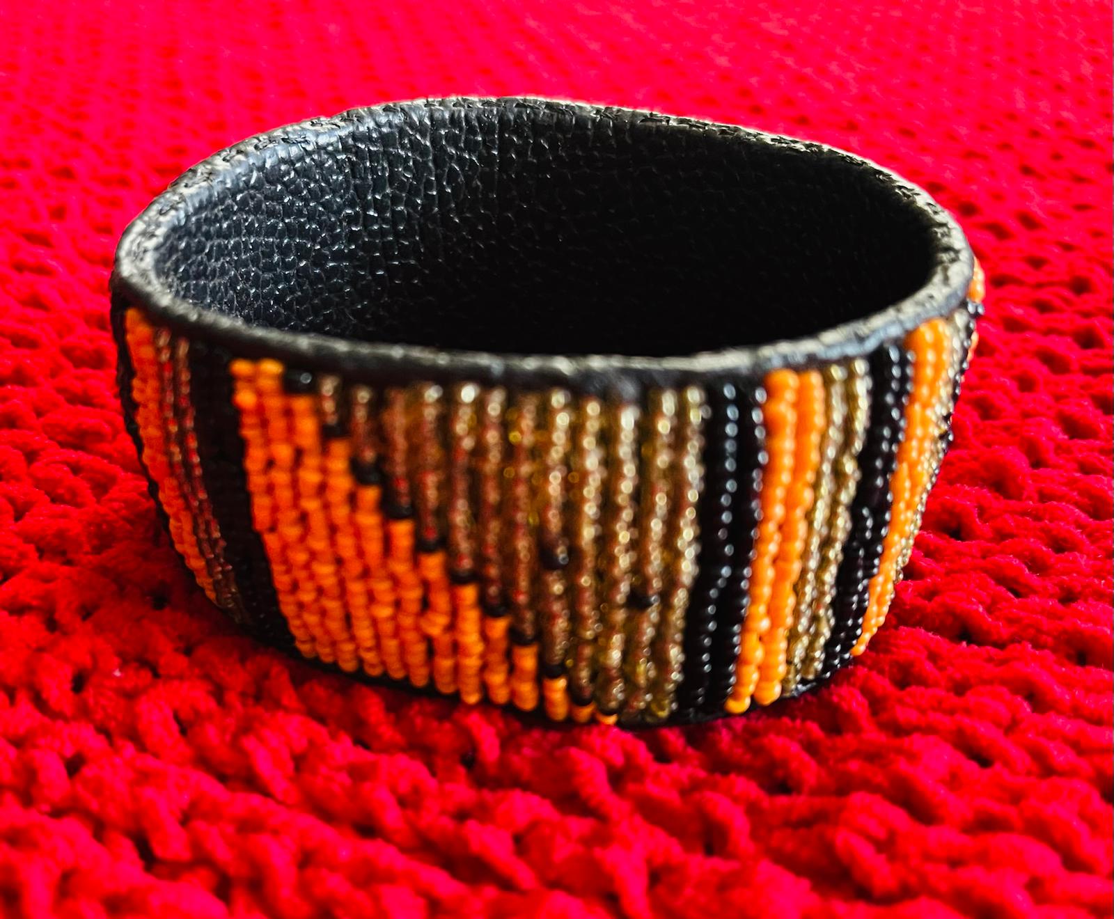 Multicolor Beaded Leather Cuff Bracelet